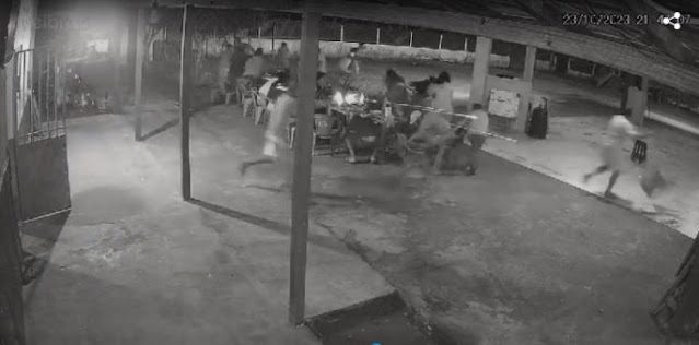Imagens de câmera de segurança mostram a correria enquanto a dupla efetuava os tiros. Não há informação de outras vítimas.