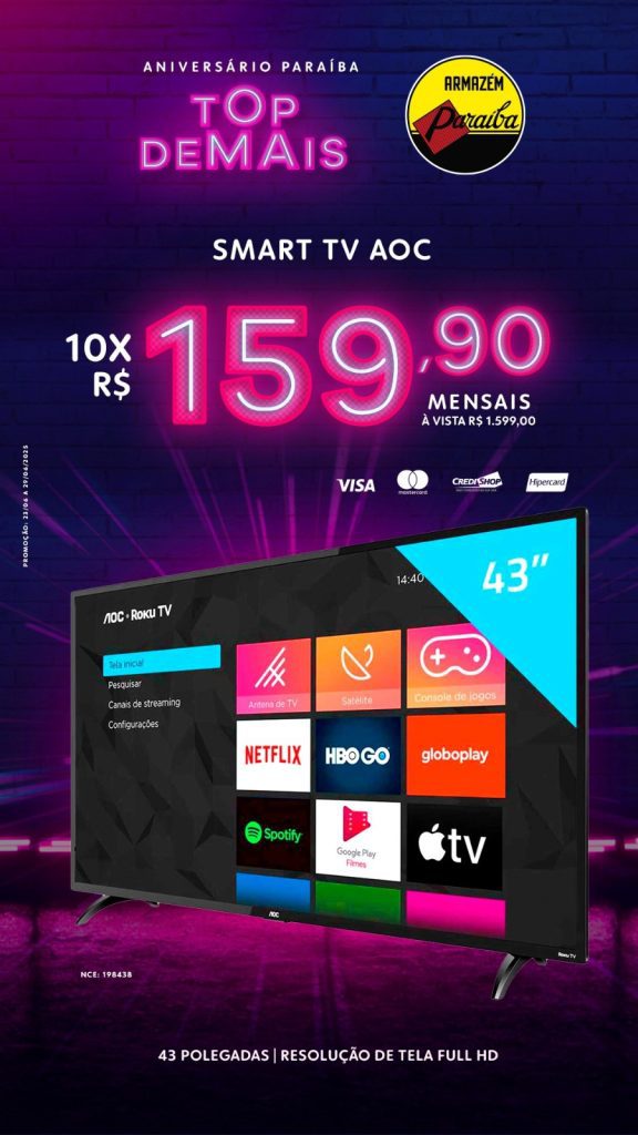 Durante todo o mês a loja prepara grandes promoções em todos os setores para comemorar o aniversario com você cliente. Então não perca, que começa nesta segunda feira (23) as comemorações do Aniversario Paraíba com ofertas incríveis.