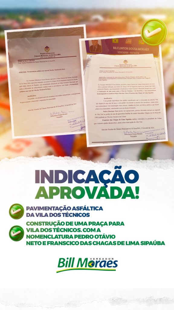 O vereador Bil se compromete a continuar trabalhando em prol da população de Zé Doca, apresentando projetos e indicações que visam melhorar a qualidade de vida dos zedoquenses. Todas as duas indicações apresentadas na sessão ordinária foram aprovadas por unanimidade pelos vereadores presentes.